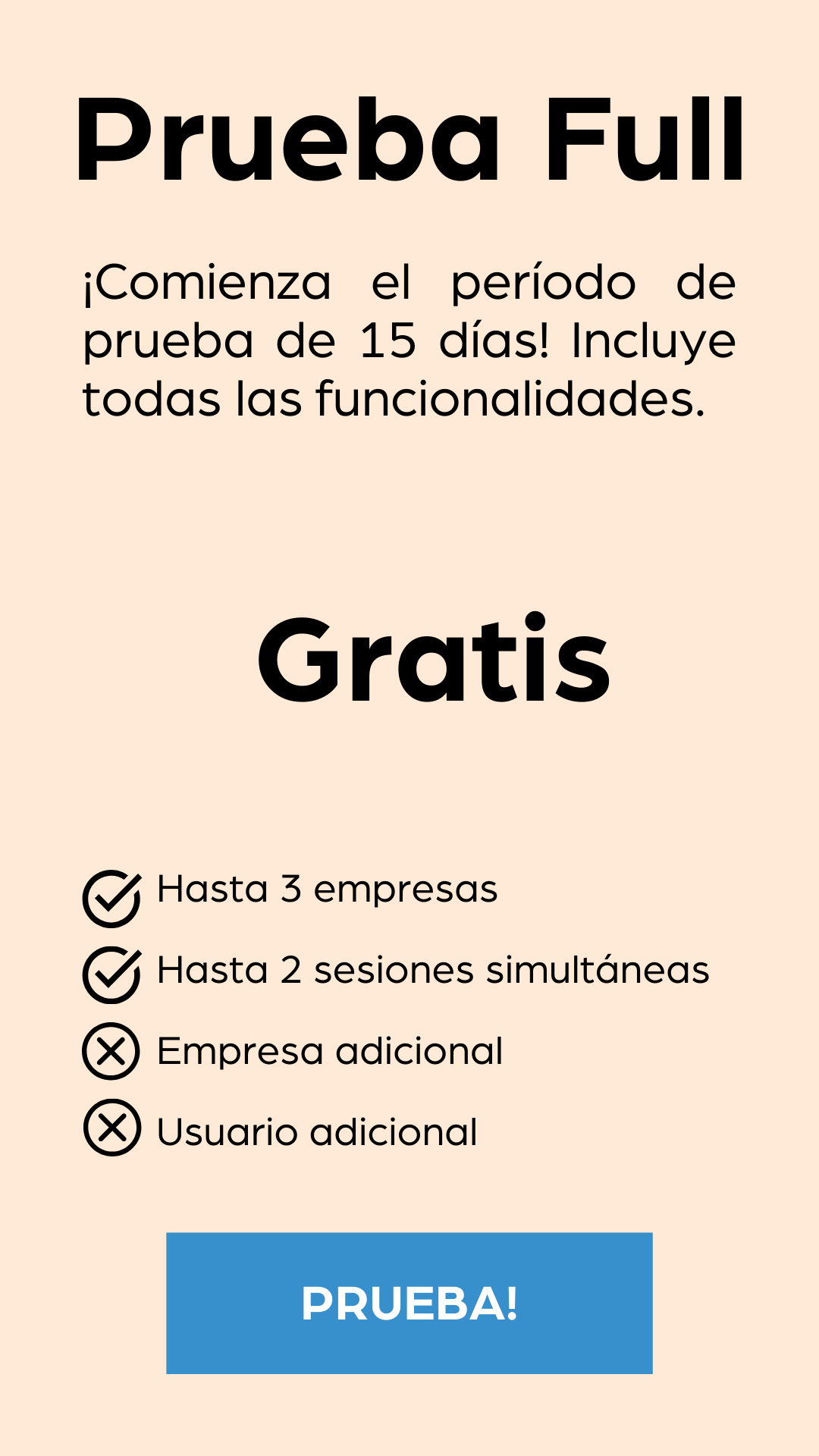 Todas las funcionalidades GRATIS por 15 días para que pruebes y descubras todo el tiempo que te puedes ahorrar, los procesos que se pueden automatizar y la eficiencia que lograrás.